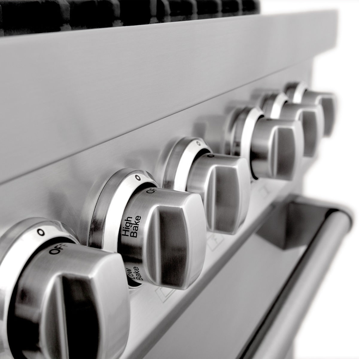 Experience Attainable Luxury® with the ZLINE Dual Fuel Professional Range. Combining both professional aesthetics and functionality, this range provides the ultimate luxury experience for a fraction of the cost. Achieve optimal results with cooktop cooking power from 4,200 up to 18,000 BTUs provided with sealed burners. Rely on precise and even heating for every homemade dish with an electric convection oven. Enjoy an ultra-deep oven capacity with a three-layered insulated glass oven for efficient cooking every use. With upgraded premium features such as SmoothSlide ball-bearing oven racks, dual lighting, and adjustable legs, this range is certain to wow both the chef and guests alike. Assembled with the highest quality materials on the market, this range offers a durable, scratch-resistant porcelain cooktop and ZLINE’s exclusive single piece cast iron grate. Cook with ease with StayPut Italian hinges, providing a safe baking environment to enjoy for years to come. ZLINE stands by the longevity and durability of their professional ranges, while ensuring further protection and peace of mind with a worry-free warranty. The ZLINE Dual Fuel Range ships next business day when in stock.