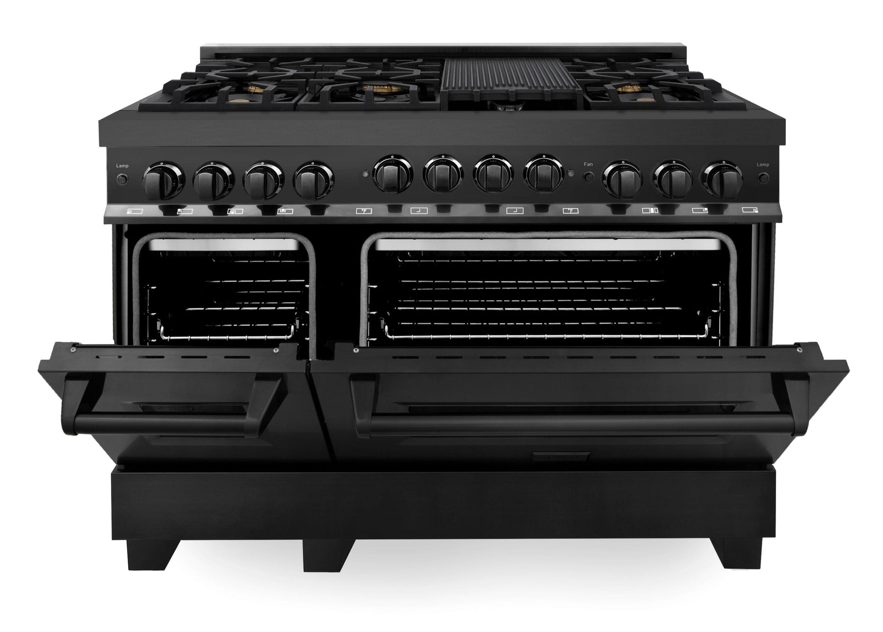 - ZLINE 48 in. Professional Gas Burner/Gas Oven in Black Stainless with Brass Burners, RGB-48