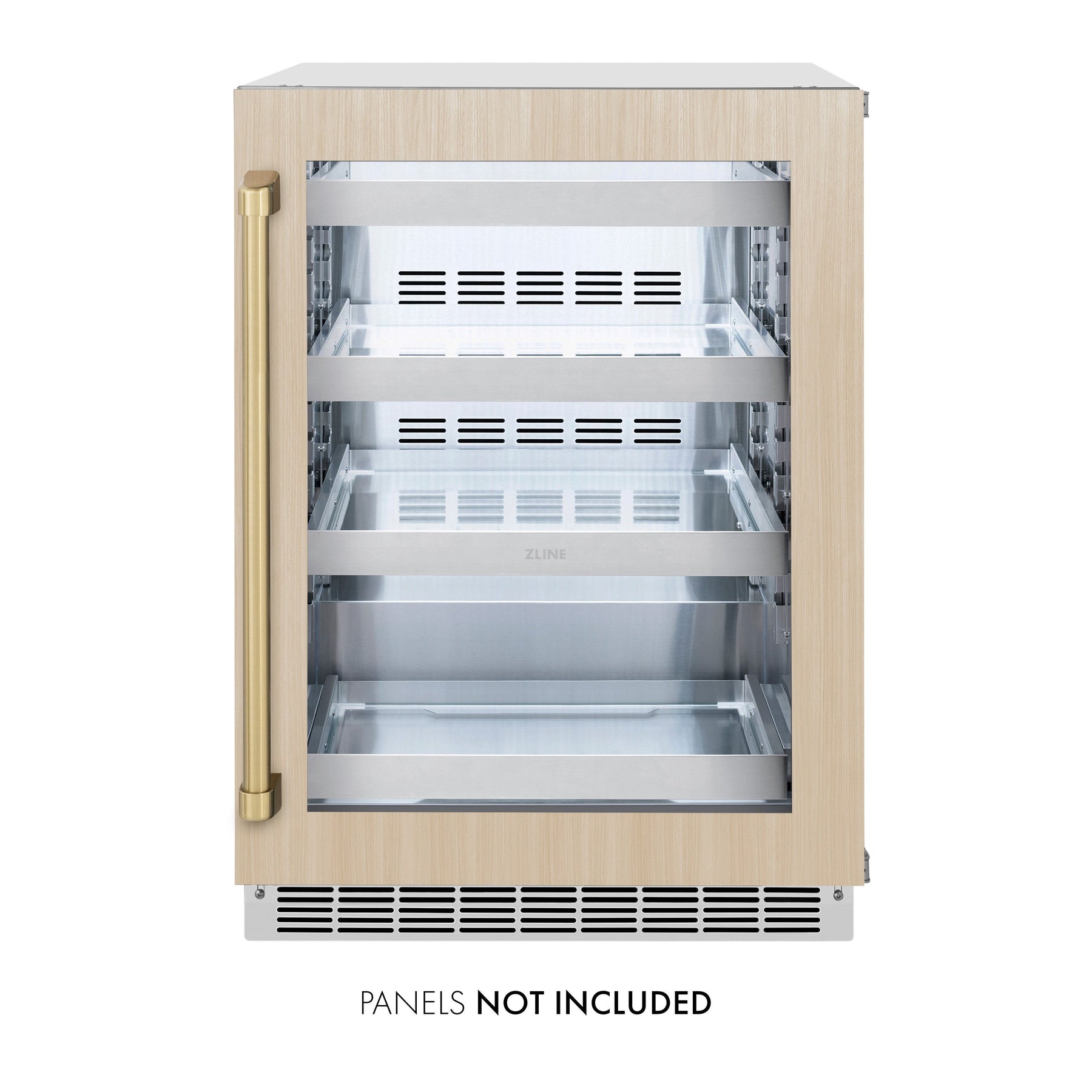 Experience luxury at its finest with the ZLINE Autograph Edition 24" Touchstone 151 Can Beverage Fridge (RBSPOZ-24-CB). Designed for both indoor and outdoor use, this fridge boasts an outdoor-compatible cooling system and a panel-ready glass door that adds a touch of elegance to any space. Entertain in style with the ultimate flexibility to host parties of any size. Elevate your home entertainment game with the masterful craftsmanship of ZLINE Autograph Edition Touchstone Beverage Fridges.