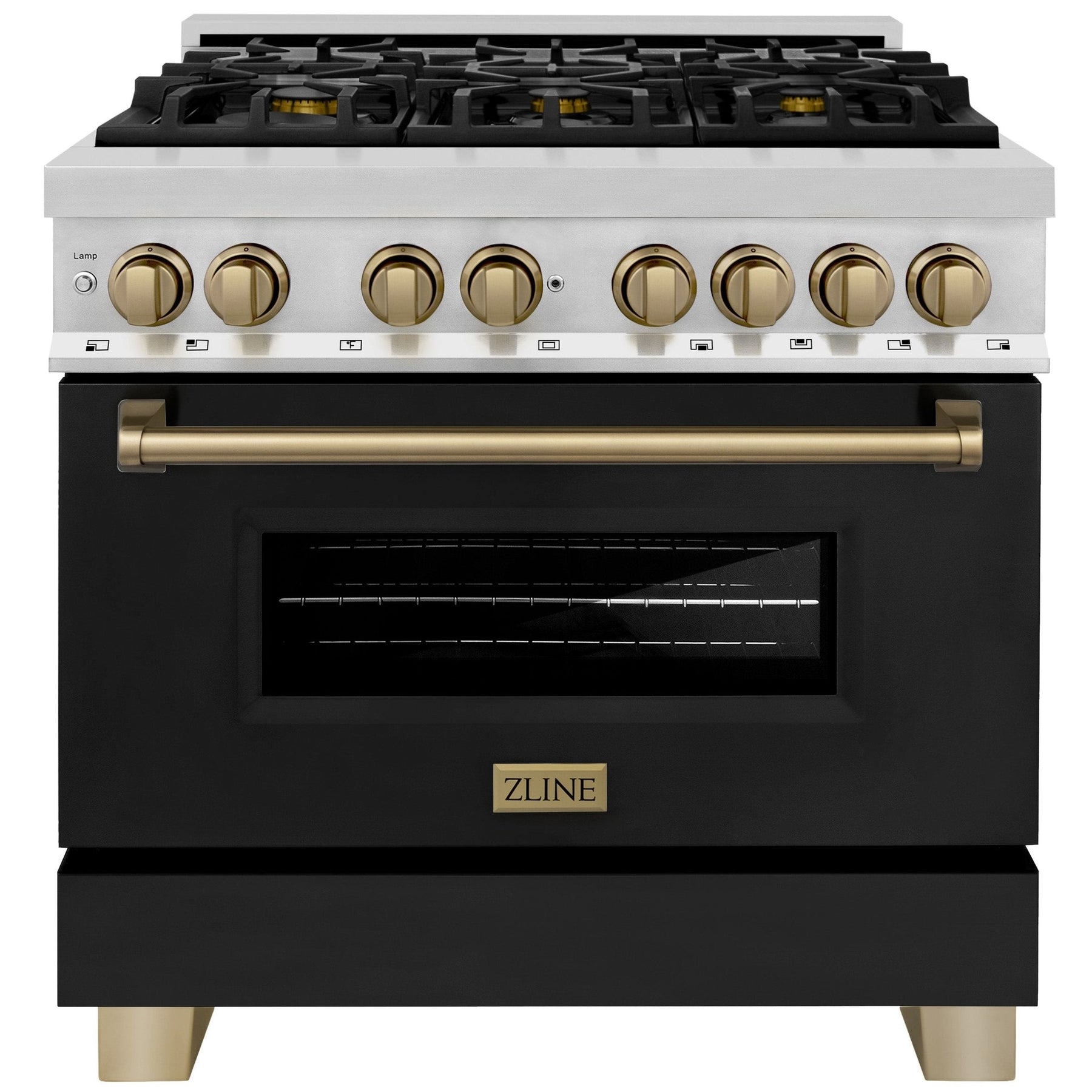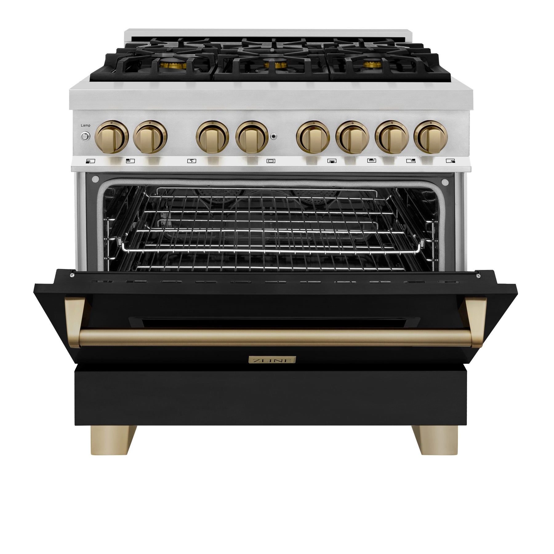 • Italian-Made Sealed Brass Burners: ZLINE's Italian brass burners add a sophisticated, timeless touch of color to this range, while offering enhanced cooking benefits like superior heat retention and even flame distribution.