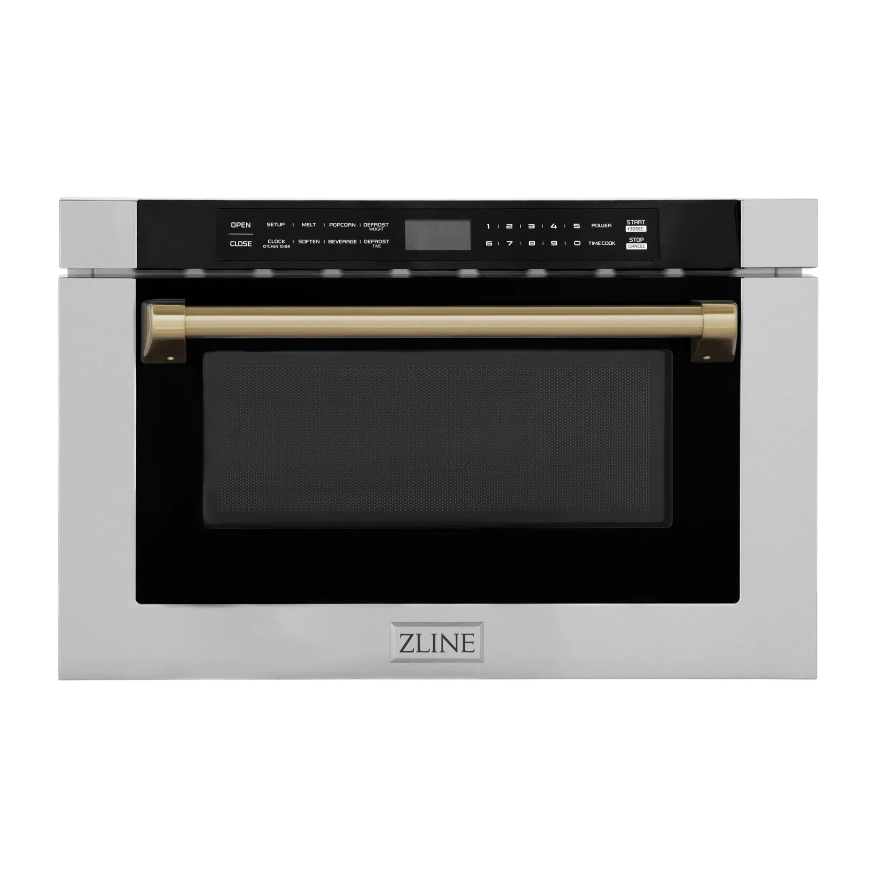 xury isn't meant to be left desired - it's meant to be attainable. Designed in Lake Tahoe, USA, the ZLINE 24" 1.2 cu. ft. Built-in Microwave Drawer with a Traditional Handle in Stainless Steel and Champagne Bronze Accents provides a professional culinary experience by pairing everyday convenience with a timeless style. Achieve ZLINE Attainable Luxury® excellence with unrivaled performance designed to enhance your kitchen's capability.