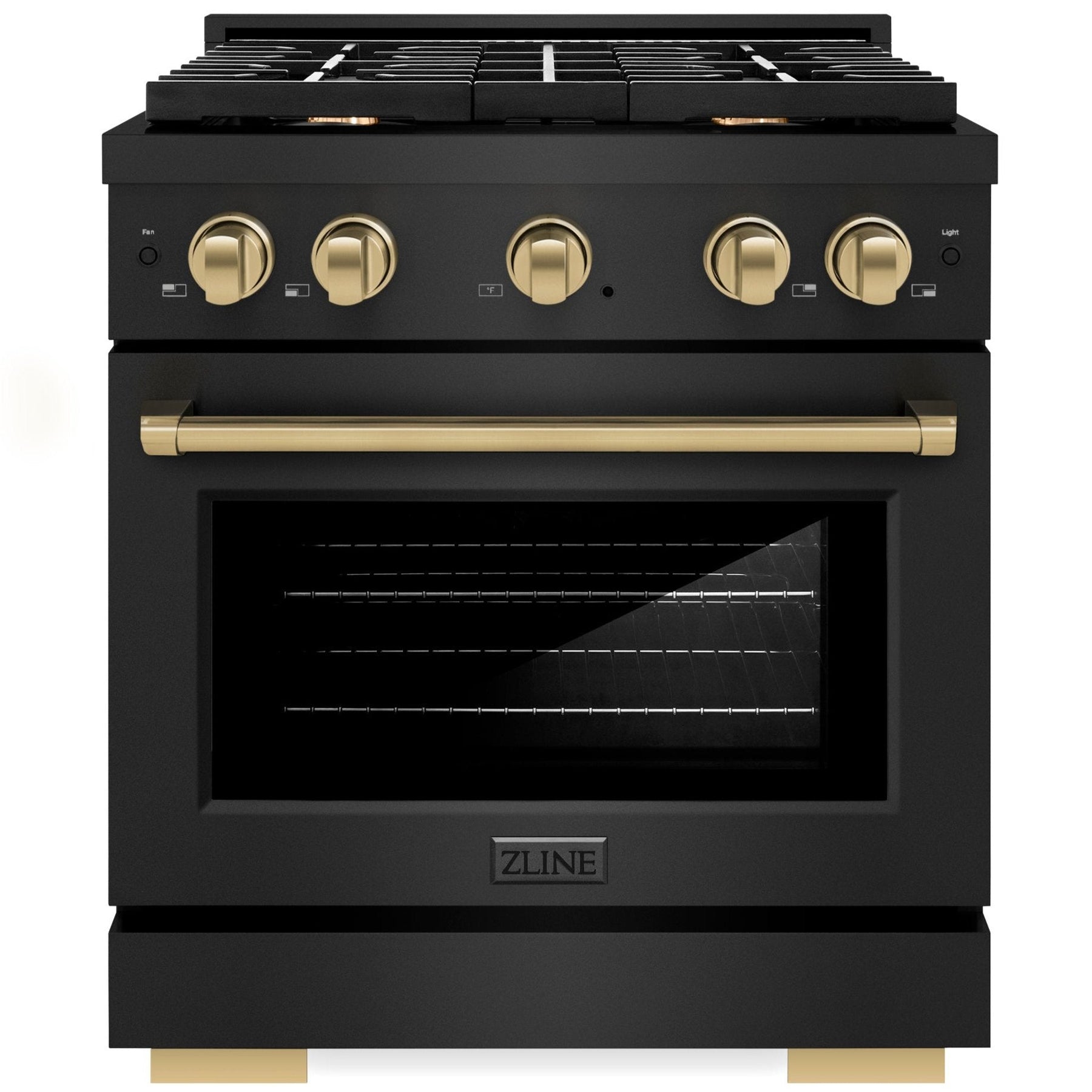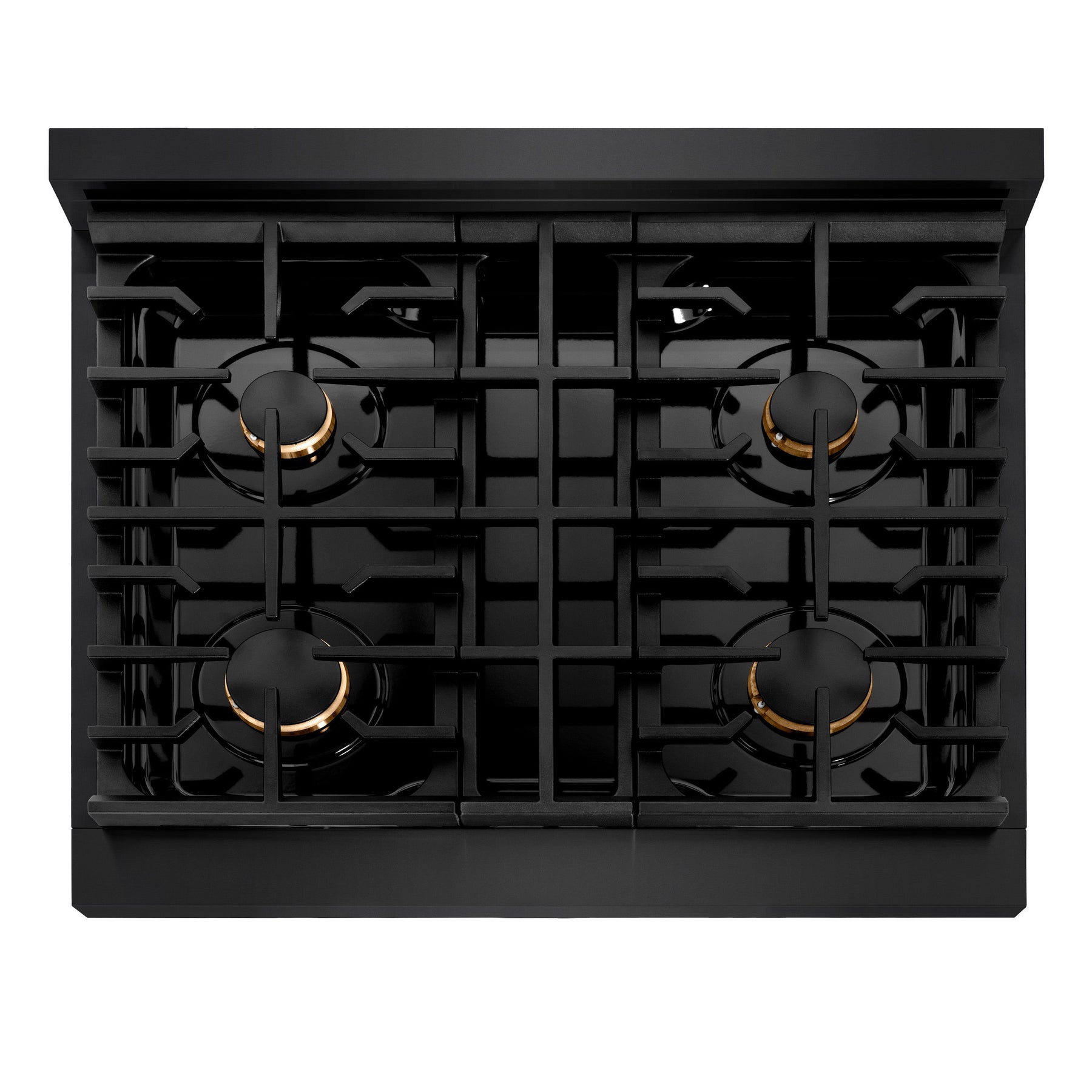 The ZLINE Autograph Paramount Edition 30" Gas Range offers professional cooking with a gas stove and convection gas oven. Designed in Lake Tahoe, USA, it features elegant finishes and personalized touches. The Paramount Edition Series is a luxurious choice with high-quality materials and innovative features. Experience gas cooking, Italian-made sealed brass burners, and a spacious oven.